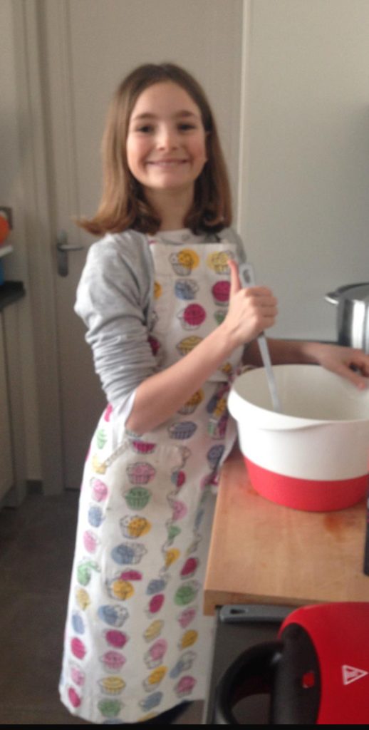 Ce que j’aime le plus, c’est me lancer des défis : essayer de nouvelles recettes, faire plusieurs pâtisseries différentes en même temps et chercher à ce que le résultat soit parfait. Je n’hésite pas à recommencer plusieurs fois jusqu’à ce que le gâteau ou le dessert soit exactement comme je l’imaginais. Je me sers beaucoup du livre de cuisine de ma mère, qui m’inspire pour découvrir de nouvelles recettes et apprendre des techniques différentes.